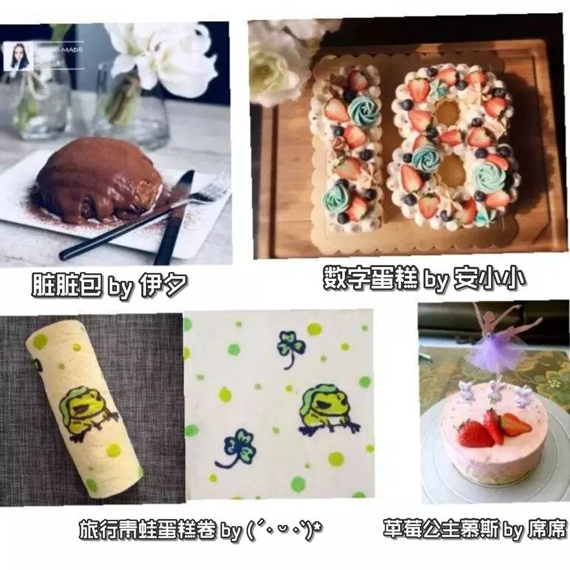 点击甜品名称,即可查看做法:脏脏包、数字蛋糕、旅行青蛙蛋糕卷、草莓公主慕斯以上幸运入选的4位同学请在这篇文章下留言告诉我们你的姓名、电话、地址(放心,个人资料不会外流哒~)小编会给泥萌发送神秘小礼物其他没有入选的同学也别灰心,持续练习就是进步的捷径!继续跟着我们一起在烘焙的世界里开心玩耍吧~么么么么哒!(比心)