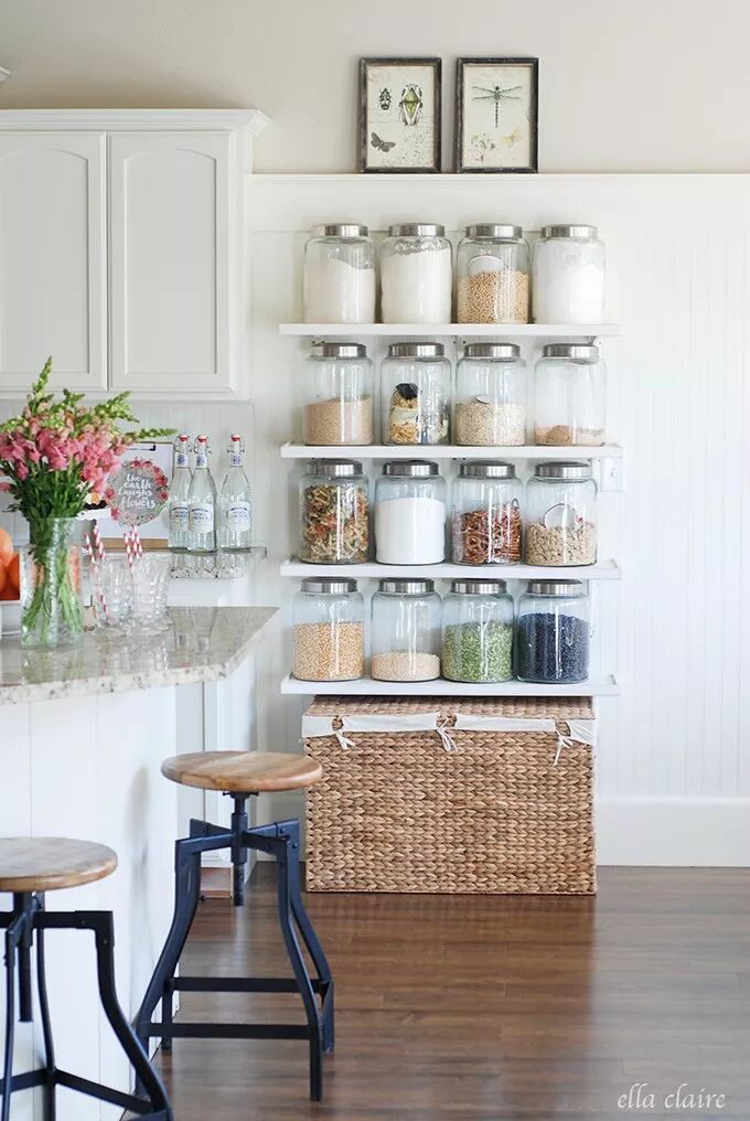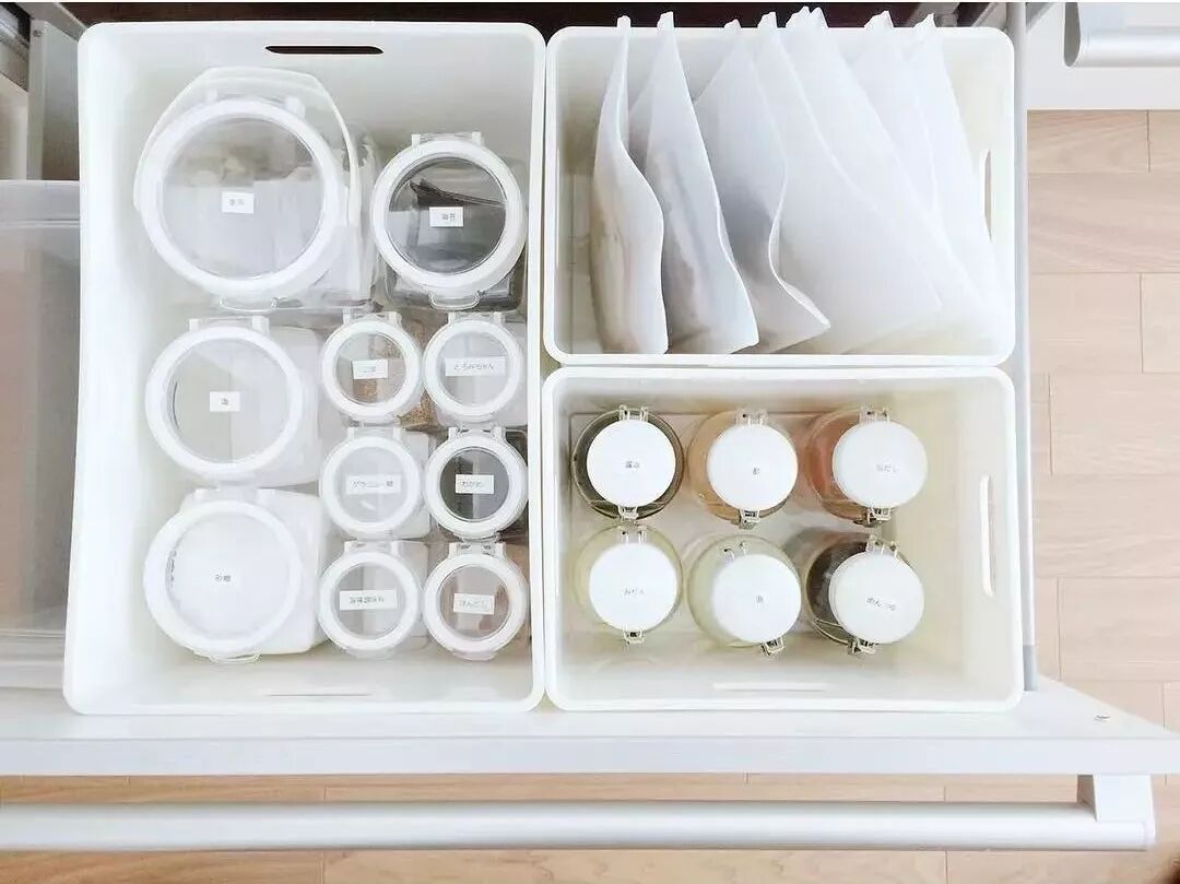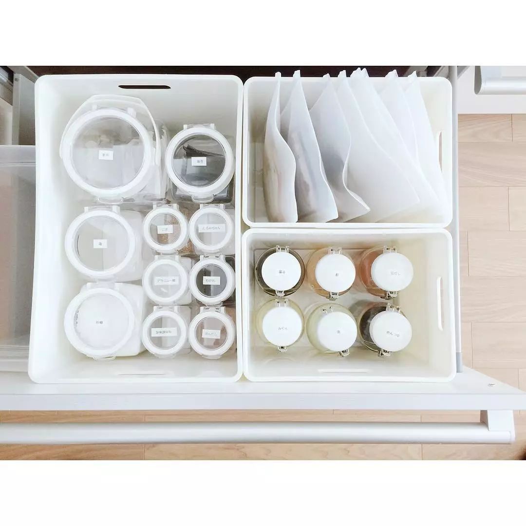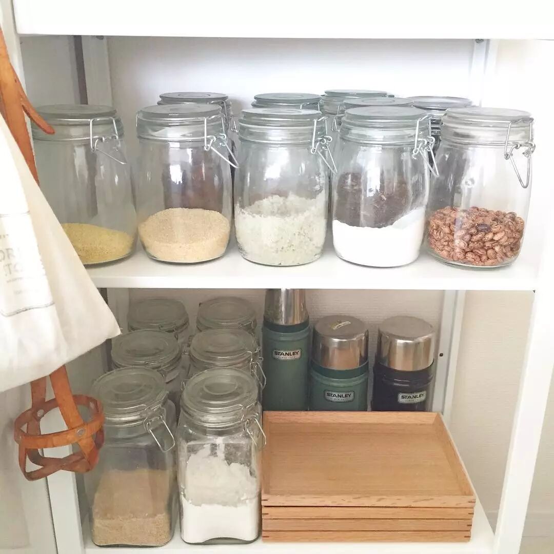 看完两位日本太太的完美厨房,大家肯定已经迫不及待想收拾一下自己的一方小天地了。接下来就分享关于烘焙的收纳技巧~在整洁又貌美的厨房里做蛋糕做面包,这样才够有幸福感哇~❶烘焙原料食材篇粉类原料:一个烘焙爱好者家里的烘焙原料,光是面粉等粉类基础原料就有十余种,再算上抹茶粉可可粉等调味品,起码也有几十种粉类原料...如果随意摆放,这些原料就会扎堆在箱子、抽屉里,一层叠一层,别说美观性,每次找的时候找不找得着还不一定呢!而且用完了还要用封口夹封口后再收起来。大概就像下图过年妈妈买回来随手一放的干果粗粮差不多...