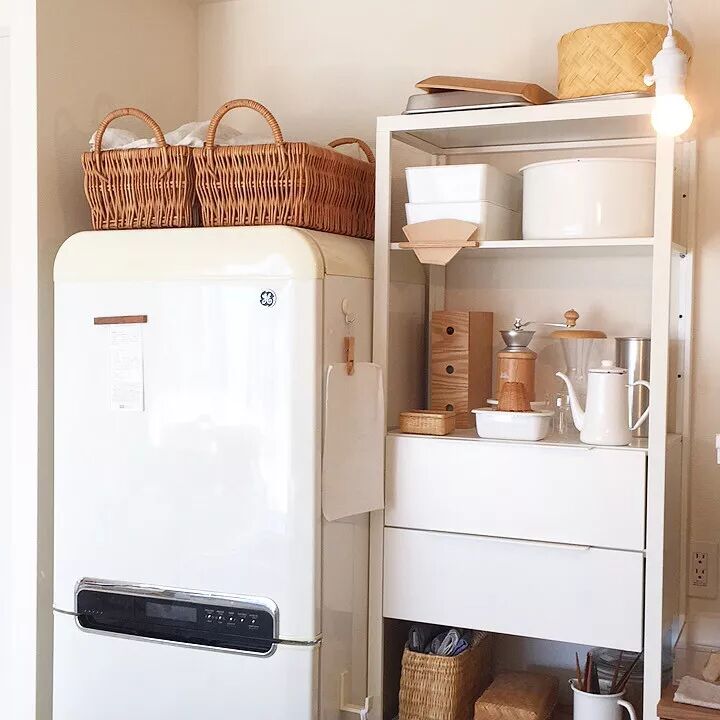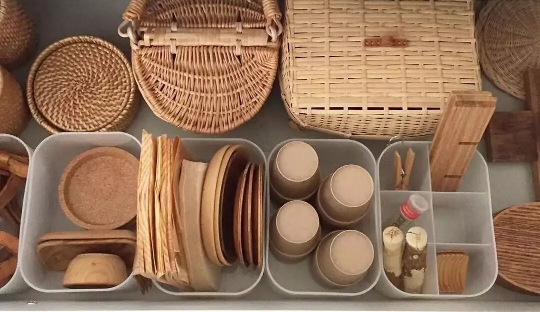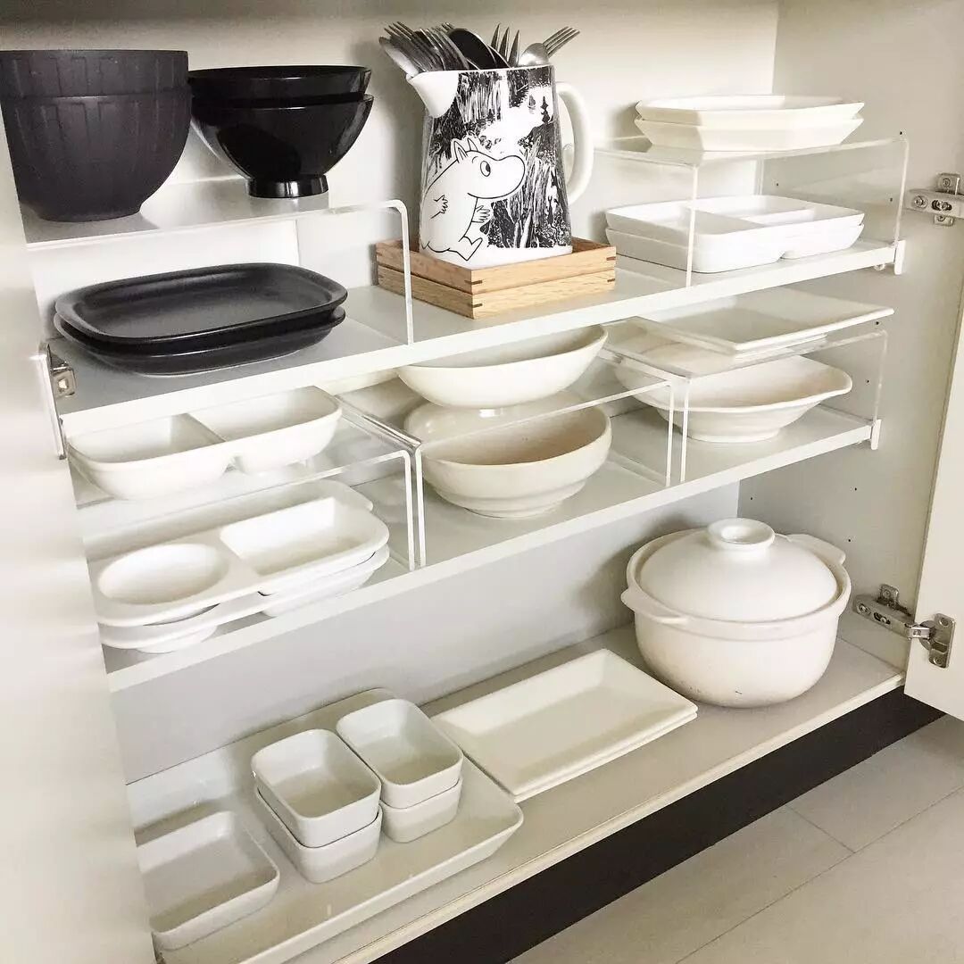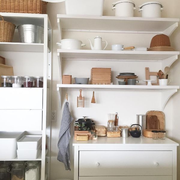 ❷餐具爱好者的厨房另一位日本太太brooch.m则是一位餐具狂魔,家里有无数的餐具,所以她的收纳对于餐具狂魔来说很有借鉴意义。由于对藤木材质的喜爱,brooch.m家里木制餐具和藤篮都很多。