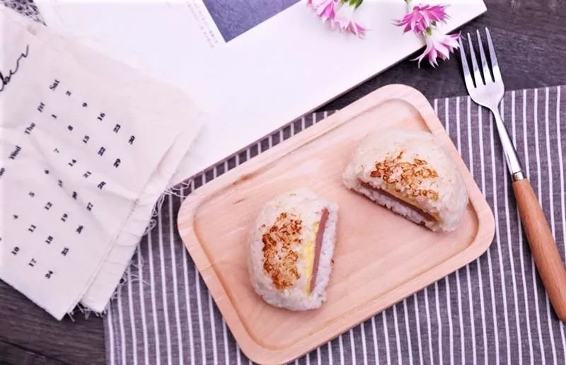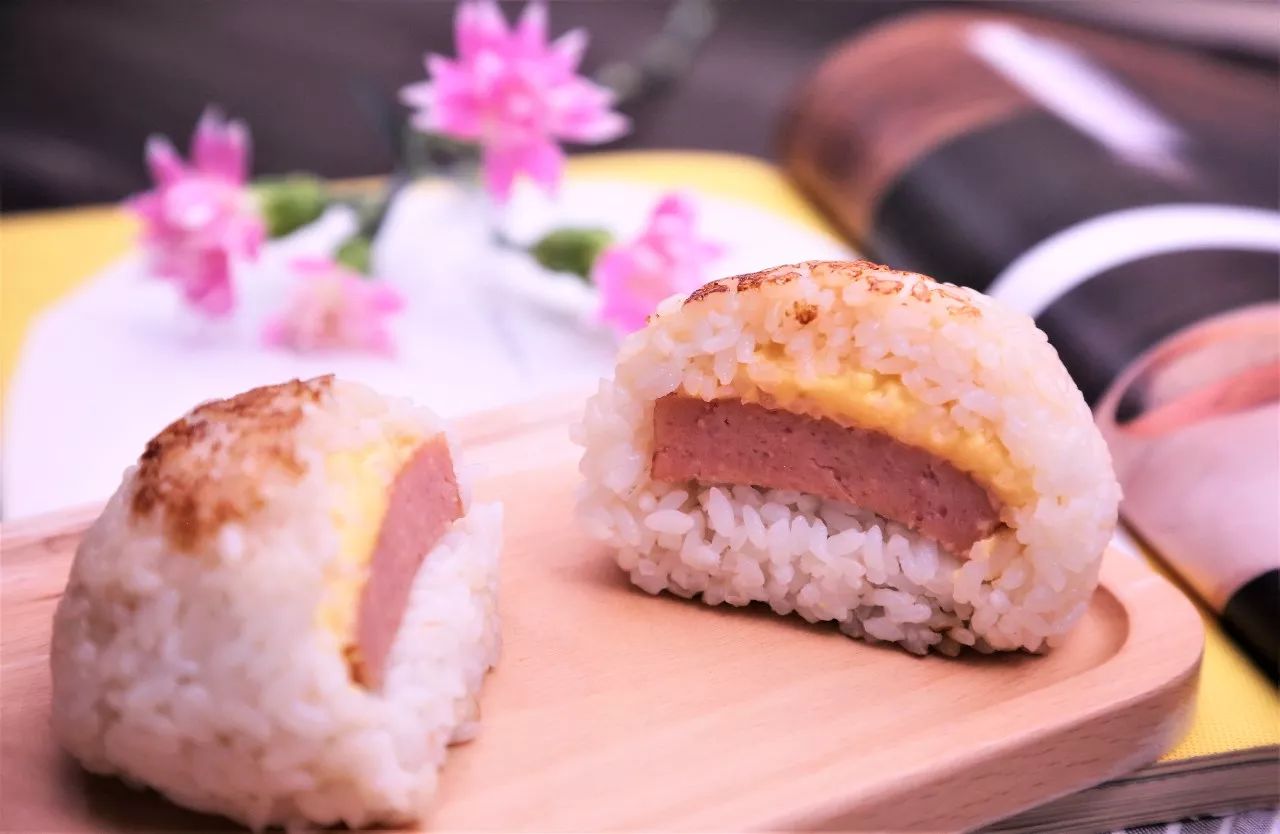 剩下的米饭不知道该做什么?试着做成饭团吧~~包进最爱的午餐肉和芝士吃一个就饱饱哒!
