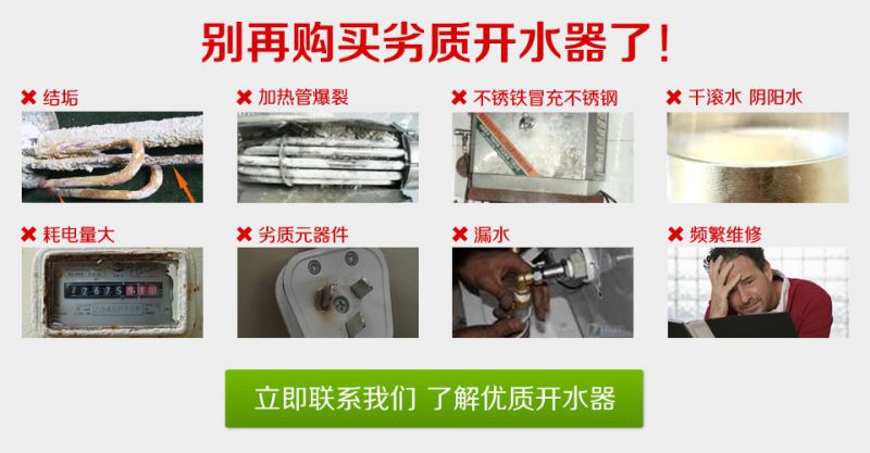 奶茶店用即开即热式电开水机;宿舍用全自动电开水炉;厨房用茶水炉;医院用节能型电开水器;电锅炉;小型办公喝水用电开水机;开水炉前置过滤;开水器龙头;开水箱水嘴;开水器配件。