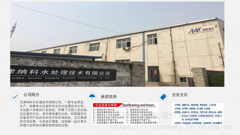 天津纳科水处理技术有限公司,自主生产RO反渗透净水设备,商用净水器,校园直饮水机等,专业品质保证!我们用良心做安全品牌,让您更放心购买使用!