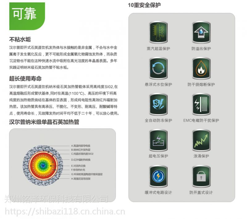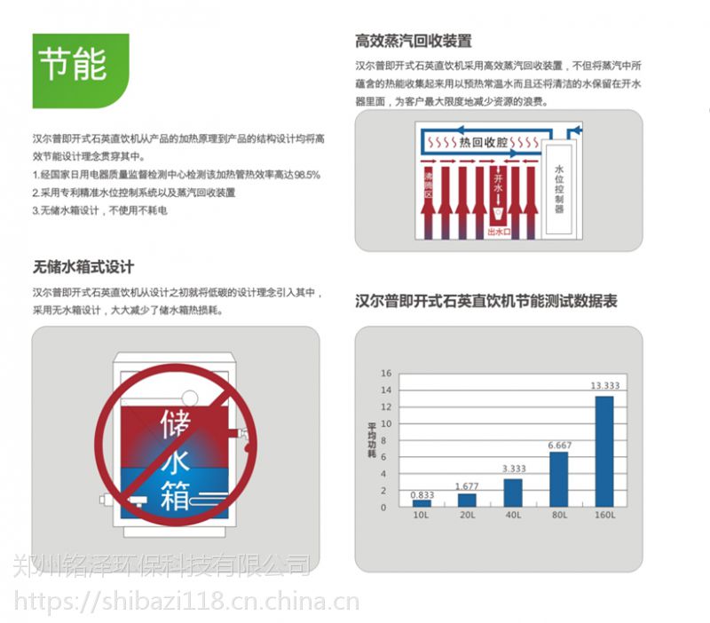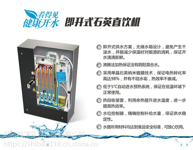 这款开水器是即热式的,内置反渗透净水器,什么时间喝水什么时间开始烧,有人问能来的及吗?能开吗?我很负责的告诉大家,这种技术很久以前就有了,只是价格比价高,现在大批量生产价格也就下来了,石英管加热不但快,而且温度一定达到100度,而且还在5秒,这样不但没有千滚水和阴阳水,而且占地空间不大,和桶装水相比可是节省了一大部分开支,冷热冰三种水随意取,从来不喝隔夜水,喝的水都是新鲜水,如果水质达不到直饮水标准,我们无条件退货,和桶装水相比不省钱我们无条件退货,如果不是***我们无条件退货,并且可以写道合同里,好产品就是不怕检验,