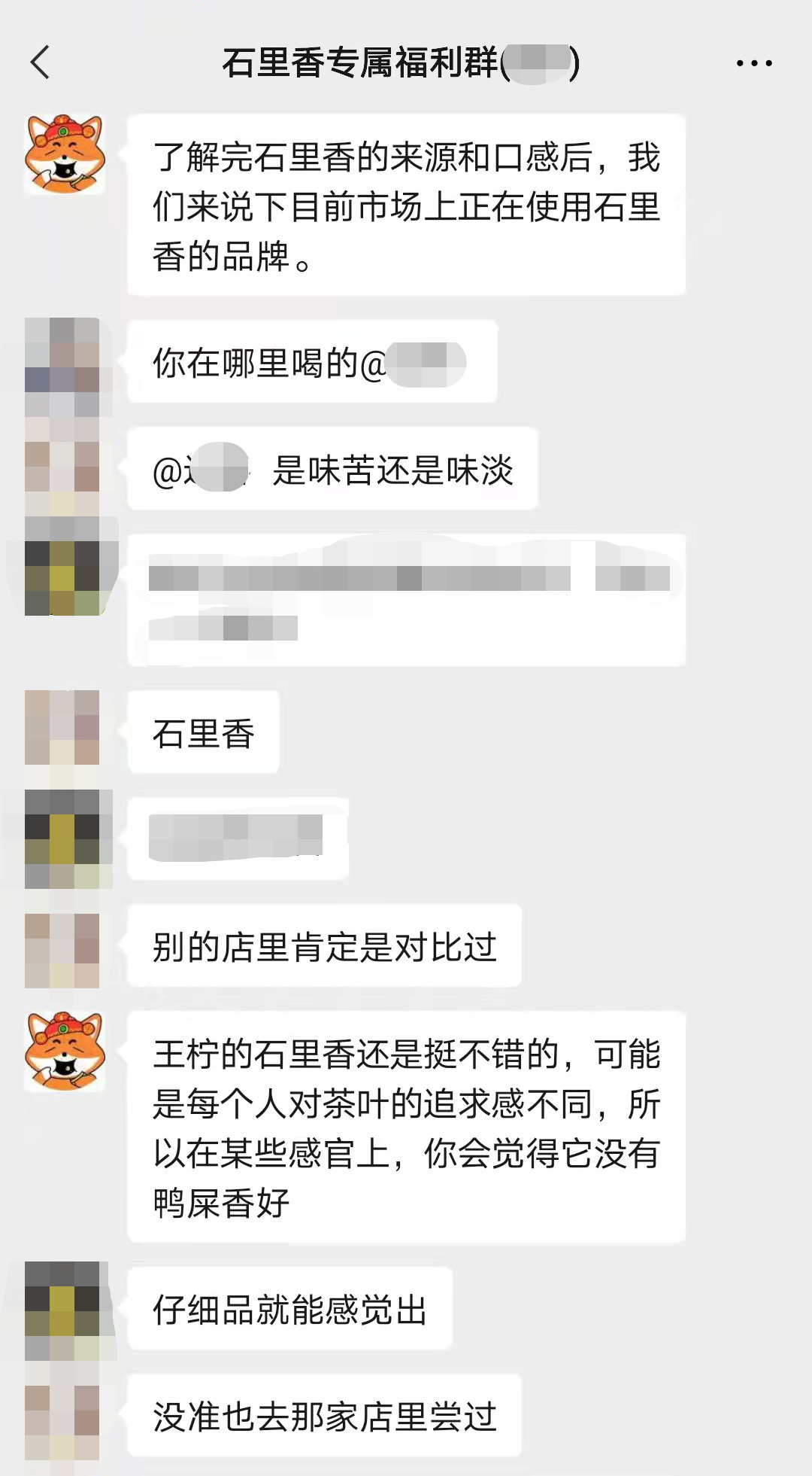 研发老师亲自在社群里解答关于石里香的产品问题,从茶底到搭配的柠檬,奶制品等。