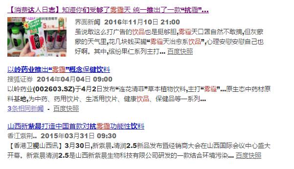 所以,趁着这个人们关注的焦点,讨论的话题,你的饮品是不是也可以打打这个雾霾牌呢?