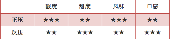 风味:闻起来有香料、松木香气,入口有着草本、巧克力的风味,以及柔和的葡萄酸调,中段有明显雪松木香,焦糖甜感明显,醇厚度较高。|总结对比两种方式萃取出来的【哥伦比亚考卡】:用正压的方式萃取出来的有着比较明显的果酸,风味层次比较丰富;而用反压的方式萃取出来的会有着明显的甜感,且口感也是比较醇厚的。