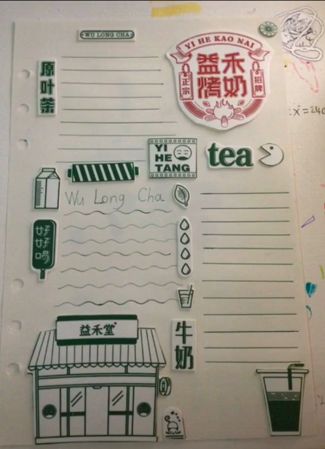也可以将杯子上的团剪下来贴在笔记本上,创意十足。