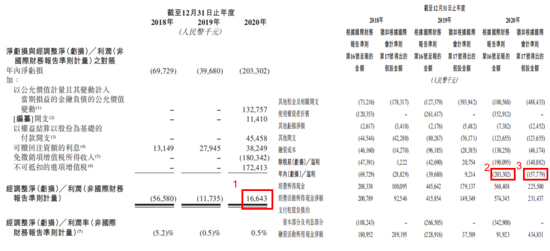 按照国际会计准则第17号,奈雪的茶2020年全年经营净利润计算公式:1+2-3(红色标注)来源:奈雪的茶全年招股书