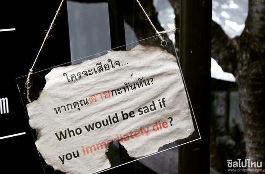 还不止这些。散落在Kid Mai死亡咖啡馆里的是各种各样的灵感/病态的迹象,比如“你准备好了吗,如果今晚你只睡一觉,再也不会醒来了?”“最终,你什么也不能带来”“最终,你不能带走任何东西”。如果你有灵感,可以拿起一张纸和一支笔,写下你自己的意愿。