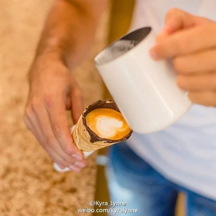 可以拿来吃的蛋筒咖啡#coffeeinacone同样是一杯咖啡,怎么让别人从照片里,感受到你生活中浓浓的小资气息。喝咖啡吃杯子,就要这么时髦 咖啡师甚至可以在这个特制的甜筒里进行拉花,手握一杯有着漂亮拉花的拿铁甜筒,美味和颜值齐飞,是不是很酷。难怪过百万人次争着晒朋友圈了。▼