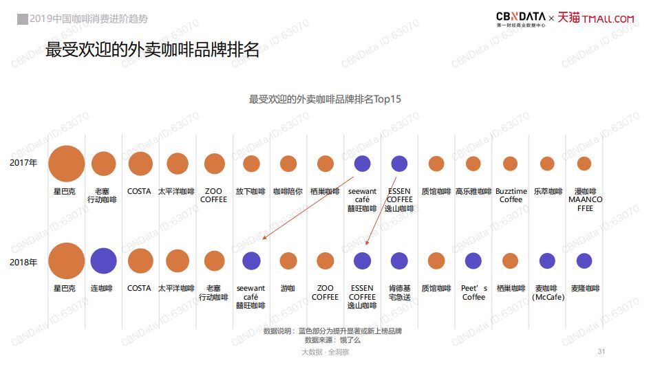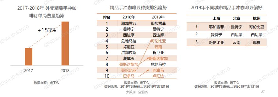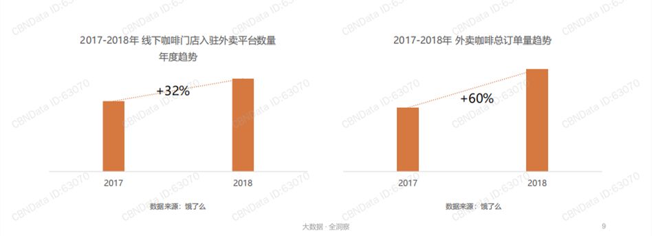 外卖咖啡订单量增幅达60%2018年线下外卖咖啡蓬勃发展,整体外卖咖啡的订单量保持高速增长,增幅达到60%;相比门店服务,外卖咖啡开拓了更大的服务面积,拓宽了更多的咖啡消费场景。