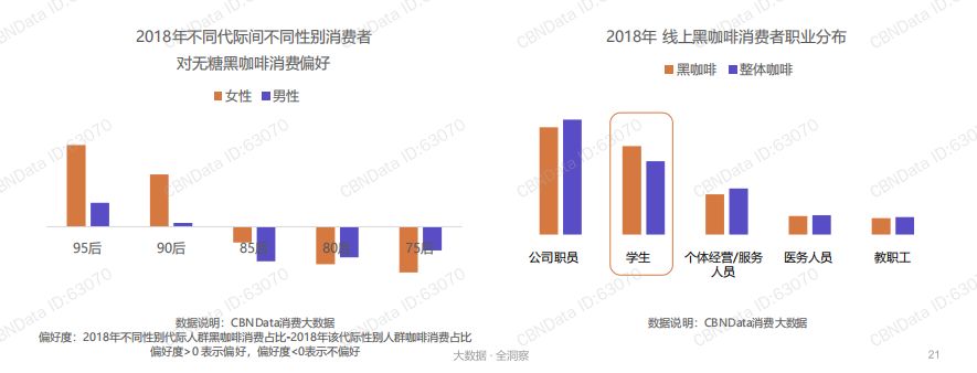 ▲无糖黑咖啡呈新趋势年轻的90后和95后对无糖黑咖啡更为偏好,尤其是女性;从人群职业分布来看,黑咖啡也受到了学生党的欢迎。