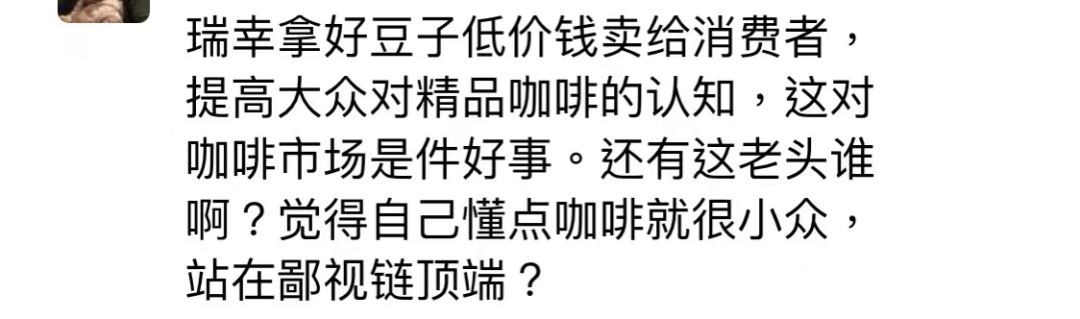 世界很大,要做的事情也很多,如果还是停留在狭小的格局里去讨论别人的缺点,这不见是件光荣的事情。觉得瑞幸这样做不合理,就动身去改变,而不是站在背后去煽动舆论的风声。花魁咖啡豆越卖越贵,这跟瑞幸的关系并不大,瑞幸是原产地直购,普通的咖啡店只能从国内生豆商手里购入。而花魁咖啡豆每年的产量就放在那里,同时这1000多吨的产量是面对全世界,不仅仅是中国。