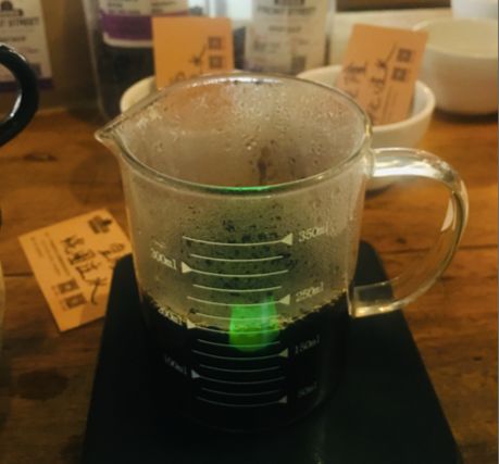 其次,用【中心注水手法】时,水柱的高度对于萃取率存在比较大的影响。水柱的高度和【绕圈注水手法】的高度差不多时,口感上会单薄且偏酸,这可能是水柱对咖啡粉的冲击力不够,咖啡粉翻滚的速度较慢,幅度较小,所以萃取率不高。所以当小编把水柱拉高并且提高水温后,咖啡粉翻滚的速度变快且幅度变大,高温能帮助提高萃取,双管齐下得出的咖啡液风味上明显会比水柱低的浓郁,口感上也变的比较醇厚。