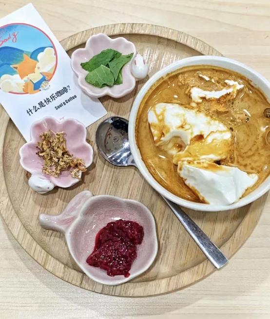 当豆腐脑遇到咖啡,你信不信,一喝秒上头!豆腐脑拿铁的创意来自天津一家没有装修的咖啡馆—Soul g Coffee。无须多言,店里满满的咖啡“荣誉证书”就已经证明老板是一个咖啡高手。设计创意咖啡的配方,这不是信手拈来嘛?