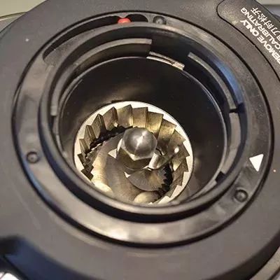 由于结构问题,大部分的手摇磨豆机都是属于锥刀类型的刀盘,当然电动磨豆机也是有锥刀的设计的。由于锥刀的设计,咖啡豆通常会明确经历破碎─磨辗两个阶段,这也导致了锥刀研磨出来的颗粒中不规则的突起很多之外,也有可能在磨辗的过程中出现少部分如平刀一般的片状颗粒。 简单来说,颗粒的〝厚度〞虽然一致,但各自的表面积由于不规则突起会相去甚远,这也导致了如果使用锥刀磨豆机在较粗研磨时容易有萃取不均的问题(因为表面积的差异会更大)。 比较上来说,锥刀是三者中最容易凸显出复杂、明亮风味的设计,是由于从颗粒上就有根本的“不均匀”。当然只要刀盘设计得宜,极细粉的比例不高,加之优秀的冲煮手法,不均匀并不是什么坏事,反而可以更好的营造出手冲的层次感。 不过因为它的颗粒形状有可能是粒状,也可能是片状,在冲煮上营造出来的复杂感就会很好,冲煮得宜可以称之为奔放,但冲煮状态没把持好的话,就是匹脱缰野马了。 这就不是单纯的过萃造成的问题,而是水流、咖啡粉浸透速度等等许多因素造成的多元差异了。严格的来说,锥刀过萃的问题比平刀来的轻微,复杂的层次感是来自各粉粒间不一的萃取状态,所以风味形容我称它是瞻之在前,忽焉在后。