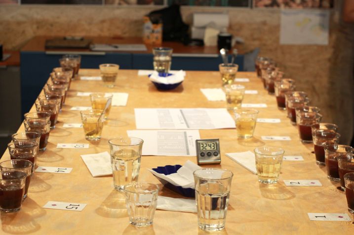 3. 抵港样品(Arrival sample) 等到咖啡入港清关之后,还会再有一次的入港样品杯测 (Arrival Sample),同样也是要确认生豆的品质是否有变化,任何一次杯测结果的变化都会影响售价,乃至于预购店家的满意度。咖啡是个必须要跟时间赛跑的农产品,从收成到饮用这中间的时间越长,就越有可能让品质大幅下降,但整体来说,能够在当季消化卖出,才有可能拿到最好的售价。而这样密集的品管才能保证烘豆店家收到的品质。坦白来说,咖啡风味的变化我们并不会认为是瑕疵,因为这是农产品无法避免的本质,除非出现像是发霉、变黑、酚味(phenolic taste)才会被我们认为是品质问题。 从生豆贸易商的采购团队在产地决定要买哪一只开始,跟烘豆店家的互动也一起开始了,许多烘豆店家可能会有对于去产地下单买生豆的浪漫想像,但问题是许多国家的农产品出口规范相当复杂,以及国际海运物流依然是充满许多不确定因素的产业,海运上的延误是经常会发生的事情,假如一整货柜的生豆延误了三个星期,这种风险对许多单一的烘豆店家是难以承担的,生豆贸易商的服务同时也是帮忙分担这种物流上的风险。 咖啡杯测是精品咖啡业界依赖的品管程序及标准。图片提供:作者 4. 品管样品(Quality claim) 从发货样品开始生豆商便会开始联络各店家,寄送当季的生豆或熟豆样品过去,介绍并推销手上有的品项,在发货样品这个阶段生豆还在货柜船上航行,前往不同目的地的仓库。海运时常会发生延误或意外导致生豆品质下降,所以当生豆抵港之后各生豆商人做的第一件事情便会是杯测抵港样品,确定整个海运的过程没有影响生豆的品质,确定无误之后便会发货给预定的店家。店家收到生豆之后,通常都还会跟生豆商来信讨论这批生豆要怎么烘。 当然也有发生过在寄送的时候发生意外、客户储存生豆的环境太潮湿造成生豆发霉的情况。品管样品的程序是客户不满意收到的生豆品质时才会发生,但这无论如何也是生豆商确保生豆品质非常重要的环节。 总结来说,精品咖啡是个强调产品味觉表现的产品,换句话说,依靠各个生豆贸易企业的寻豆团队的味觉能力去评价每一批咖啡的品质是这个行业的核心标准,尤其现在精细耕种和处理已经不是非常困难的条件,世界各地的生豆多数都会是在外观瑕疵上相当不错的生豆,所以每一次的杯测及风味描述都是非常重要的品管过程。