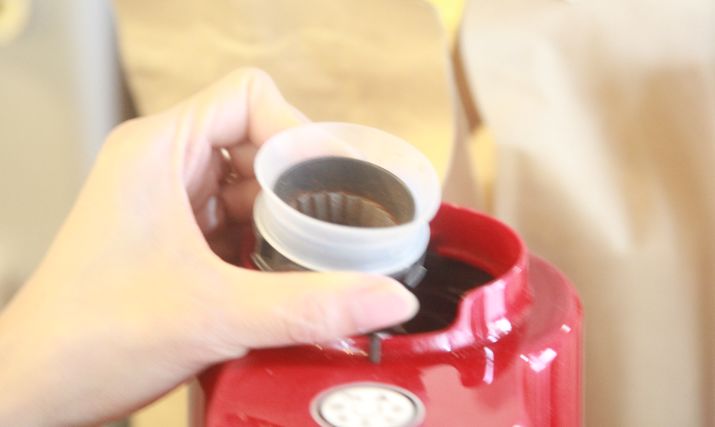 4、把接粉器放到磨豆机机身下面凹槽处接粉即可;