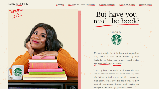 ntent series,星巴克与流媒体播放平台网飞(Netflix)合作并推出一个新的节目系列。