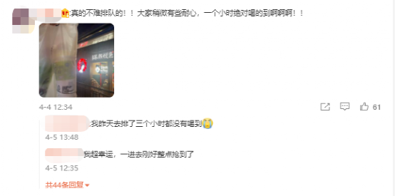 茶颜悦色的深圳文和友门店刚开第三天,从微博的评论留言中还能看出它的火热程度,有网友评论称,排队一个小时就能喝上了;也有网友吐槽排队排了三个小时都没喝上。