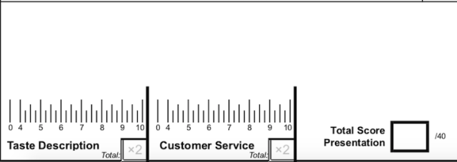 评审需清楚地于评分表中的横向评分尺上标示“热”、“温”、“冷”三阶段的评分,可以H、W、C三字母分别代表,或以画圈并以箭头表示品质如何随时间而改变。评审会在评分表上笔记字段详细记录感官评估感受。做为评分参考以及帮助选手了解评量的情况。评审必须机其内容限于从感官评估或顾客的角度来描述对咖啡饮料的感受,避免批判冲煮的手法。(例如:风味有“尖锐的酸”或“麻布袋味”是可接受的描述。“冲煮时间太长”或“萃取不足”则不是恰当的评语。)