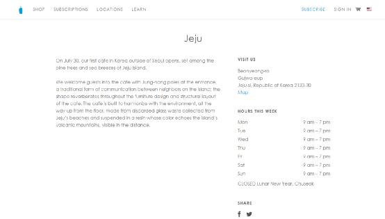 根据济州岛当地新闻媒体Jeju Weekly的介绍,蓝瓶咖啡今年在韩国新开的两家门店地点都设立在了首尔内,令其他地区的粉丝甚是失望,而此次新开的门店是第一家开在首尔之外的。济州岛当地新闻媒体Jeju Weekly还在报道中称,早在5月的时候,蓝瓶咖啡韩国分支便开始为济州岛的新门店招募工作人员了。提供应聘的职位既有全职的,也有兼职的,只是关于这家新门店的具体细节(如位置)并未披露。济州岛是韩国国内旅游需求集中地,而此次将韩国首家首尔外的门店设立在济州岛,似乎是为了吸引“咖啡游客”。