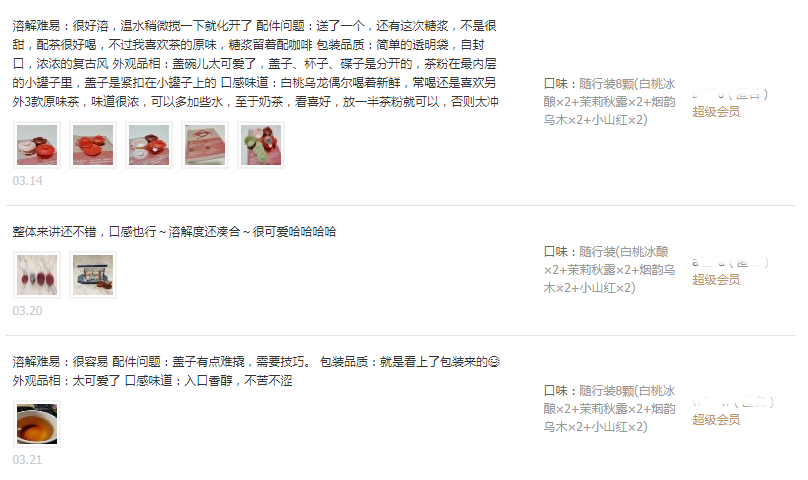 产品说明中号称三秒钟可冲泡出一杯好茶,从线上顾客体验留言看,大多数顾客是被这种即溶茶mini可爱的外观吸引。