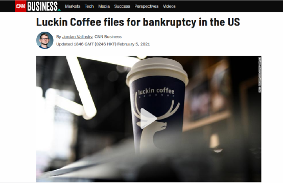 2020年12月,瑞幸咖啡被美国证券交易委员会(SEC)指控造假,并同意支付1.8亿美元达成和解。2021年2月,瑞幸咖啡在美国申请破产保护。