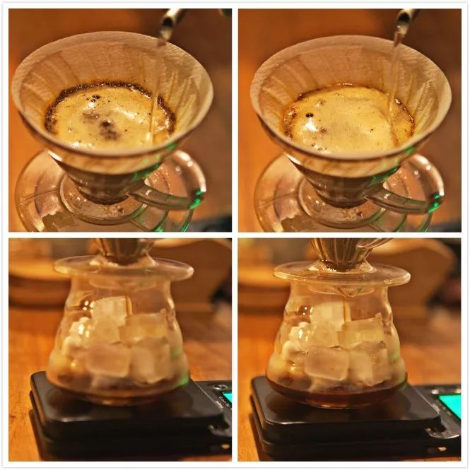 6、OK!整个萃取时间大约也是2分半钟左右(跟平时正常20克粉萃取时间接近)。等所有咖啡液流完,摇晃均匀。这时候冰块刚刚好溶解8成,剩下的冰块还能保持冰咖啡的冰度,而你,已经可以得到一杯足够冰爽舒心的冰手冲啦!最后总结:制作日式冰手冲,有几个要点:①、冰与水的比例约1:1 。不一定是1:1,但是不能偏得太多(看室温轻微调整),否则要么冰咖啡不够冰爽(冰少了);要么咖啡太淡(冰多水少,萃取不足)。②、手冲萃取率问题。有时候不一定一次就能冲出足够满意的冰手冲,这时候就要检讨一下,自己的冲煮是太淡了(萃取率低了)还是出杂味了(萃取率高了)。一般而言,在保证均匀萃取的情况下,“提高水温”、“调细研磨”、“增加搅拌”、“延长萃取时间”都可以提高萃取率;反之亦然:“减低水温”、“调粗研磨”、“减少搅拌”、“缩短萃取时间”都可以降低萃取率。③、不要过于指望冰手冲的风味有多爆炸,有时候并不是萃取率与冲煮成功与失败的问题,而是人的嗅觉与味觉、触觉,在低温的情况下本来就会变得迟钝,加上香气分子在低温下也会反应迟钝,不容易扩散而被人捕捉到。所以,冰手冲可以解馋、可以提神、可以续命!但不一定能够让你惊艳!好啦!今期的分享就到这里,有什么关于日式冰手冲疑问的小伙伴们,可以留言给小编,大家一齐探讨,一齐学习进步哦!【往期回顾】日常冲煮 | 日晒耶加和水洗耶加区别,该如何冲?日常冲煮 | 用最简易材料,做活力夏日创意咖啡冰饮日常冲煮 | 浅烘焙瑰夏 + 蛋糕滤杯日常冲煮 | 中深烘焙豆子四个手冲要诀日常冲煮 | 如何确定一只豆子用什么水温和研磨度?日常冲煮 | KONO+黄金曼特宁免责声明:本文图片全部来源网络,网站部分内容如图片、我们会尊重原作版权注明出处,但因数量庞大,会有个别图文未来得及注明,请见谅。若原作者有任何争议均可与网站联系处理,一旦核实我们将立即纠正,由“饮品界网”整理编辑,转载请注明,本文意在传播咖啡文化,若侵权请告知删除,谢谢~!