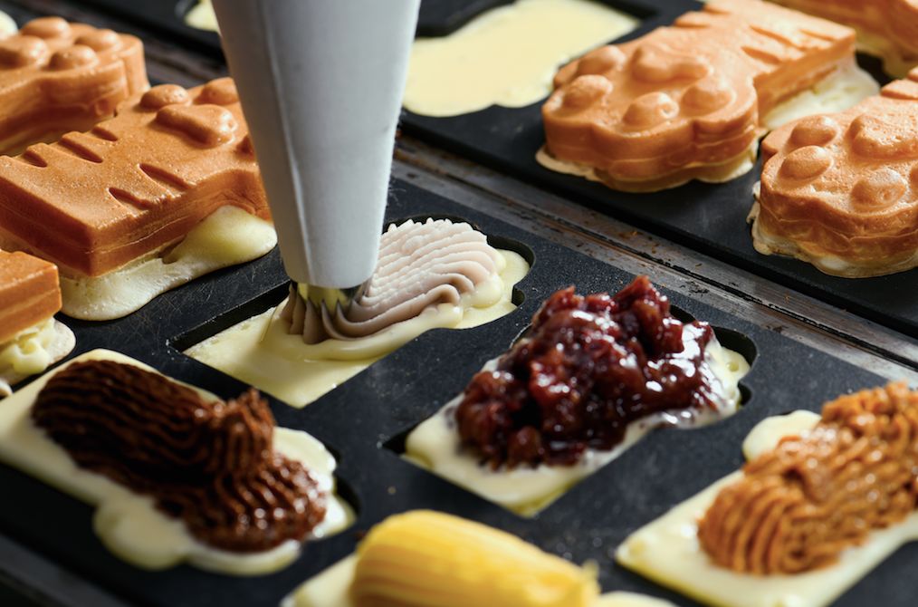 多种口味搭配爆浆芝士德肠熊姬烧结合了拥有长长拉丝效果的莫扎瑞拉芝士和咬开就会爆汁的德国香肠,让人一试难忘。而芋泥蛋黄熊姬烧中的手工熬制芋泥入口顺滑绵密,搭配整颗咸蛋黄,奶香与咸香交融共生。层次同样丰富的还有日式红豆熊姬烧。这款熊姬烧特意选择两种红豆进行熬煮制成红豆泥,以达到红豆粒分明、红豆沙绵密的多层次口感。从外形上看,熊姬烧是一只可爱的熊爪,造型理念与星巴克一“杯”难求的“猫爪杯”不谋而合,暗合“猫咪经济学”背景下的消费者心理。同时,熊姬烧精心设计的造型也与品牌IP“熊姬“相呼应,成为品牌附加值的重要一环。