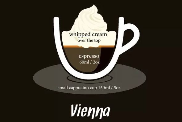 7 |VIENNA 在奥地利旅游是,由当地极力推荐下亲身尝过Vienna,那是由2杯Espresso加入鲜奶油制成,也可以在最底层加入砂糖或冰糖,喝起来既香浓又爽口,非常适合恋爱中的情侣,但由於含有糖份与脂肪,所以要减肥要留意了!