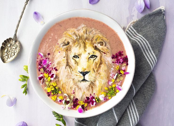 谈起这些疗癒人心的奶昔制作过程,Hazel Zakariya表示其实一切都是个意外。有一天,她下厨时,发现奶泡与奶昔搭配起来竟然可以创造出如此漂亮的艺术效果,於是她那日索性就利用餐刀作为画笔,奶昔作为画布,再将不同的天然食用色素调配成多层次的色彩,绘制成令人疗癒的动物、人物等图案。除了还让人感到可爱之外,同时也是一道健康又美味的早餐。戳 视 频细腻的笔触,再以鲜花洒落周围,每日的早餐都是如此疗癒