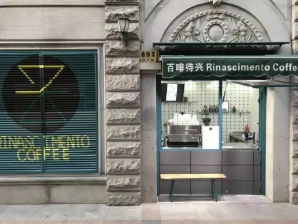 位于高楼林立的人民广场,Narrow Gate九江路店采用了与快节奏都市生活十分融合的灰蓝冷色调。虽然门面不大但是店家却很用心,可谓麻雀虽小五脏俱全,真的是转角遇见的好咖啡! 老板严选的高品质的咖啡豆,配上他独特的匠心来制作咖啡,俘虏了周边好多上班一族的心。 地址:上海市九江路675号 电话:13002143661NO.7 百啡待兴Rinascimento Coffee