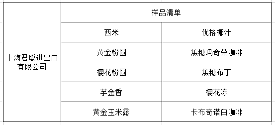 选手样品索样清单及联系人附表一:福州市帮利茶业有限责任公司爱尔兰Kerry食品配料集团雀巢专业餐饮上海奕方农业科技股份有限公