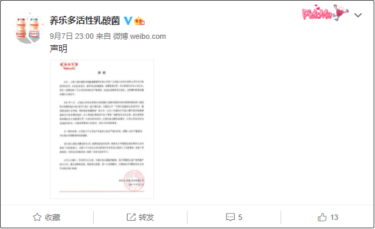 养乐多活性乳酸菌微博发布消息称,养乐多称旗下子公司在产品宣传上缺乏严格的审核,管理上存在严重漏洞,对此高度重视,诚恳接受处罚。自从事发的去年4月以来,养乐多一直督促旗下子公司对宣传内容严格审核,杜绝此类事件再次发生。