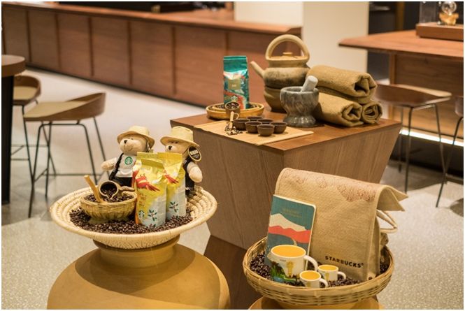 与云南丽江店和大理门店有所不同,星巴克云南普洱店内处处体现着咖啡原产地的特色。