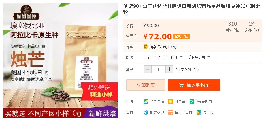 单品豆篇90+烛芒折后价72半磅!淘口令▼:¥Rx8xbtpmT6K¥