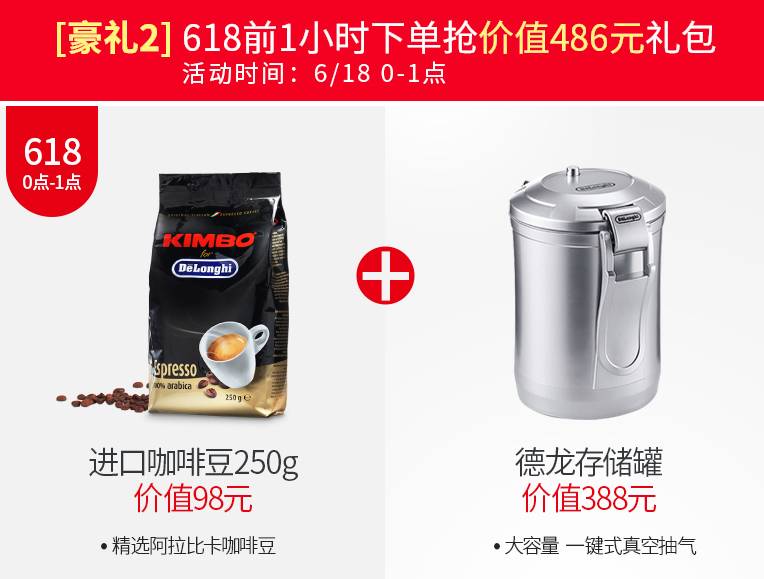 618前10元预定23.420型号咖啡机即可获得德龙豪礼而且预定后可以享受618特权价格,这样两全其美的事简直少见!那么礼品有什么呢豪礼1