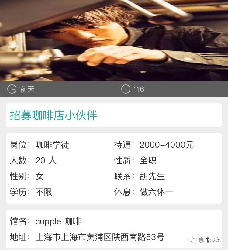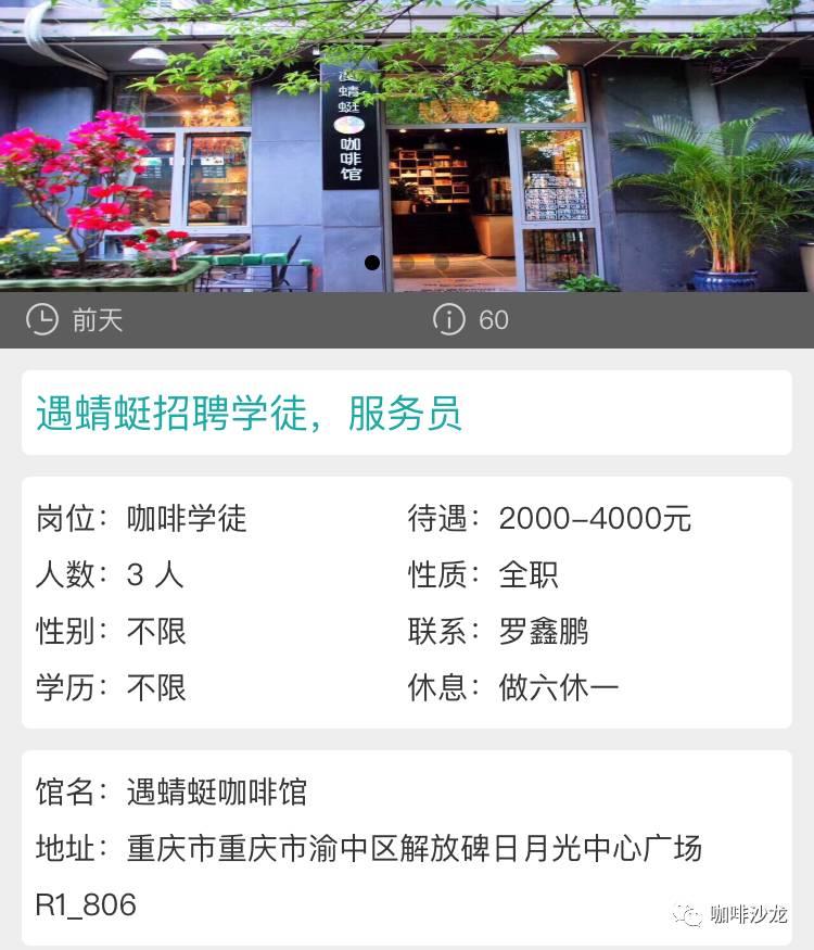 [重庆咖啡学徒3名]最后,欢迎大家使用后留言提出更好的建议对于招聘小程序我们还会持续完善更新我们为您做了那么多希望您随手转发朋友圈让更多人知道吧!
