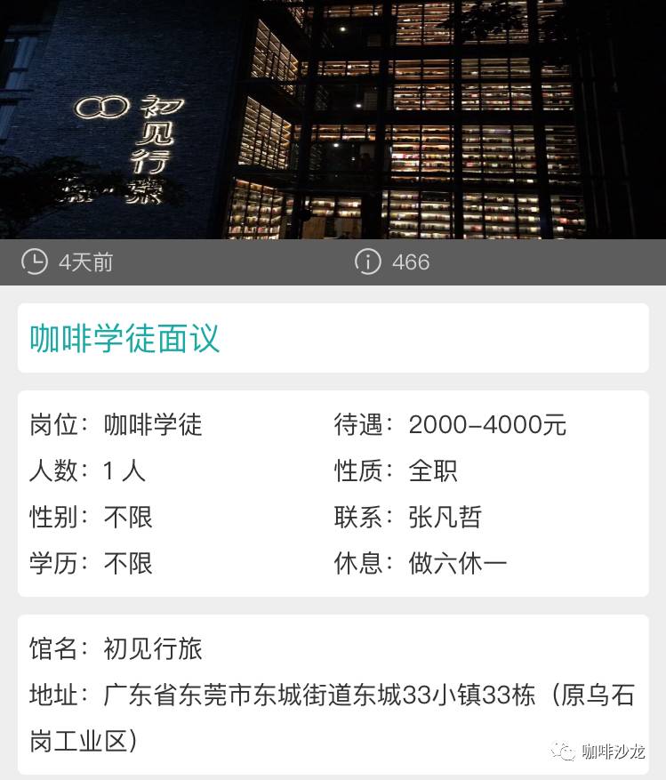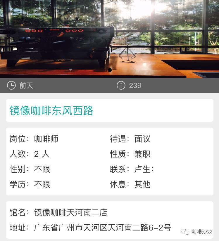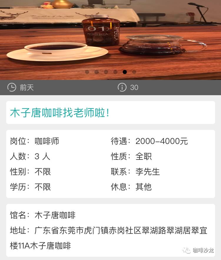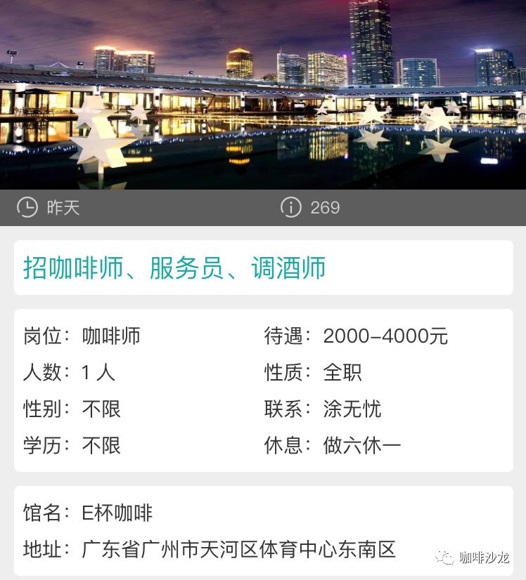 一点点的帮助。在过去几个月,咖啡招聘小程序也逐渐被大家所熟知并越来越多人使用,不管是咖啡师/学徒或是咖啡馆主,在这里都可以找到自己想要的职位/工作伙伴。而且覆盖面之广使得小程序能够延伸到全国各个大中小城市。除了江浙沪、广东、北京等大城市外,还可以惠及到更远的地区/城市。但仍然有小伙伴因为忙碌或信息刷新过快而错过了许多招聘信息,咖啡沙龙因此也决定将招聘信息整合汇总,每周分两次提供给大家,希望你们能够早日找到自己心仪的工作/伙伴。点击直接进入小程序▼
