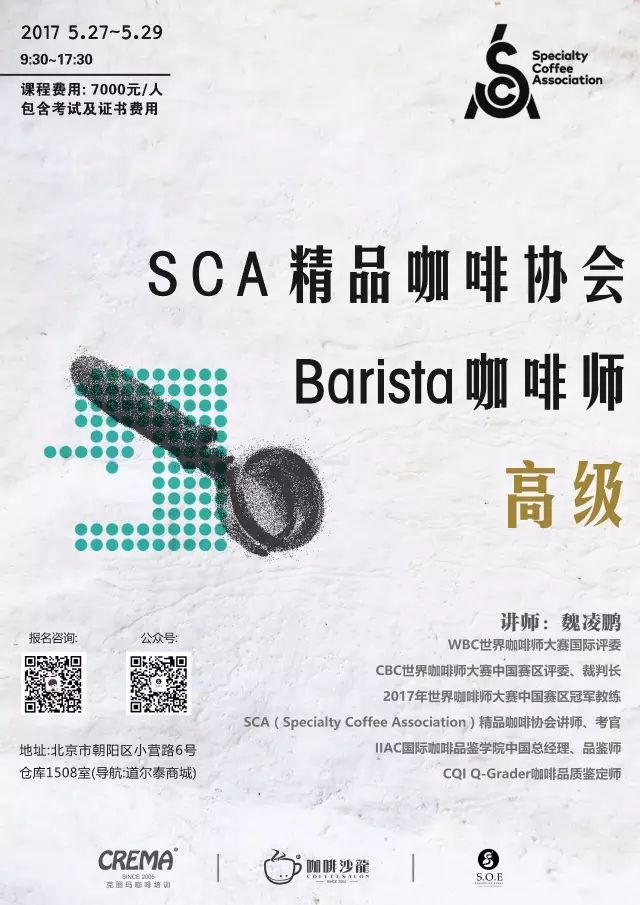SCA Brewing 金杯萃取高级认证课程讲师:魏凌鹏开课时间:5月24日-5月26日9:30-17:30SCA Brewing 金杯萃取高级认证:7000元/人(包含考试以及证书费用)