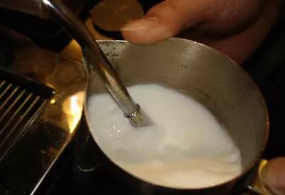 三、直接在牛奶的表面进行发泡,会产生大气泡 在使用半自动咖啡机发泡牛奶时,若您未将蒸汽管头部一半插入到牛奶中,满功率启动,而是直接在牛奶的表面进行发泡,会瞬间产生大量的大泡泡,致使牛奶发泡不绵密。对于牛奶的发泡,咖啡师说熟能生巧,多练习都能打发出绵密的奶泡的。千万不要重新加热牛奶,否则二次受热的蛋白质就不起作用了,而且味道也会变差。