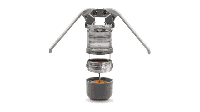 它的机身顶端有两条操作杆,在使用时,你需要先装入咖啡粉并压实,中间的圆筒中倒满热水,然后上下拉动两根操作杆 10 - 30 秒钟,一杯意式浓缩便制作完成了,整个过程不超过 3 分钟。