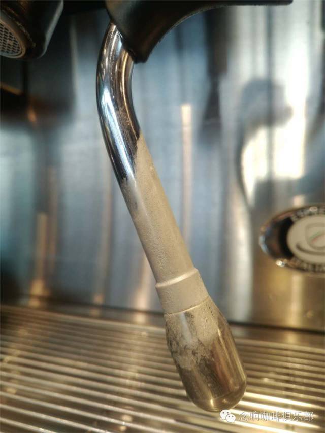 黑色的脏物质就是蒸汽枪内隐藏着的奶渍- 6 -现在我们就可以把蒸汽头安装回去了,你是用什么方法把蒸汽枪头拆下来的,就怎么安回去就可以了。注意用力的力度,一定要轻轻的!是不是还在好奇,你每次用蒸汽枪后,都有及时的擦拭和放蒸汽,怎么还会有奶渍?我们在打发牛奶时,是将锅炉内的蒸汽快速的释放出来。当牛奶打发结束时,会快速的关闭蒸汽阀门,蒸汽枪内会成为真空的状态,牛奶也就会被“吸”在蒸汽枪内。因为蒸汽枪温度很高,一部分的牛奶也会干在蒸汽抢的内部,所以你在放蒸汽的时候,其实还是有一部分粘在了内壁上。当然了,现在有一部分神机,已经不会再有这种问题了。