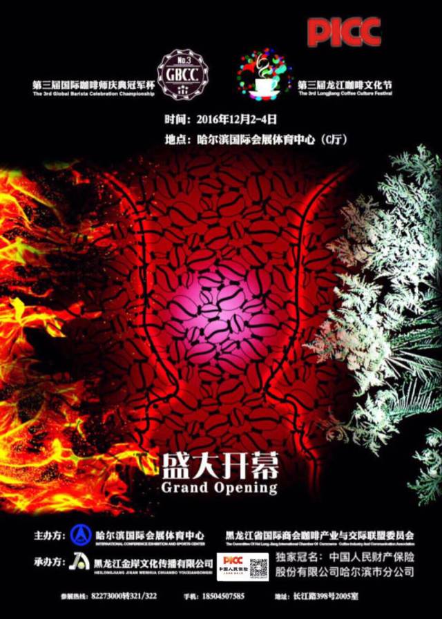 2016年12月2日至4日在哈尔滨国际会展体育中心“第三届龙江咖啡文化节”即将盛大开幕。届时第三届国际咖啡师庆典冠军杯(GBCC)即将在展会上举行,此次比赛将有来自世界各地的优秀咖啡师同台竞技,评委阵容也是异常强大。同期龙江咖啡文化节展会之后,我们给大家带来了哈尔滨、亚布力三日游,带您领略魅力冰城,享受冰雪奇缘,还在等什么,快来参加吧!赛 事 介 绍第三届国际咖啡师庆典冠军杯(GBCC)于2016年12月2日-4日在哈尔滨国际会展中心为您呈现最专业最精彩的咖啡盛宴,届时有主办方邀请的各国家优秀的咖啡师与中国咖啡师同场竞技。比赛时间:2016年12月2日-4日比赛地点:哈尔滨国际会展体育中心(C厅)比 赛 形 式——拉 花 PK 赛