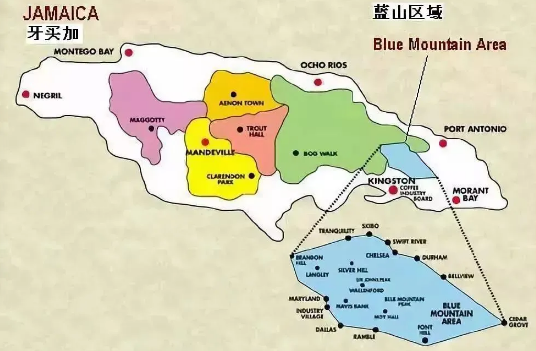蓝山山脉位于牙买加岛(Jamaica)东部,因该山在加勒比海的环绕下,每当天气晴朗的日子,太阳直射在蔚蓝的海面上,山峰上反射出海水璀璨的蓝色光芒,故而得名。蓝山最高峰海拔2256米(海拔2256m,只有1700m以下才能种植咖啡,以上为保护林),是加勒比地区的最高峰,也是著名的旅游胜地。这里地处咖啡带,拥有肥沃的火山土壤,空气清新,没有污染,气候湿润,终年多雾多雨,平均降水为1980毫米,气温在27度左右,这样的气候造就了享誉世界的牙买加蓝山咖啡,同时也造就了世界上最高价格的咖啡。只有种植海拔在800米以上的蓝山咖啡才是正宗的蓝山咖啡,前街咖啡豆单上的蓝山咖啡海拔是在1310米,来自于克里夫顿庄园。克里夫顿庄园前街咖啡的牙买加蓝山来自克里夫顿庄园,克利夫顿是牙买加至今仍在正常运转的最古老的咖啡产地,并且在牙买加仅有克里夫顿农场具有“热带雨林”标志。早在十八世纪中期(大致在1750年左右),克利夫顿农场就开始种植和生产咖啡了,今天的克里夫顿农场是这个地区最大的庄园,按国际标准来算,也属于小规模种植,其中许多庄园主是小土地拥有者。