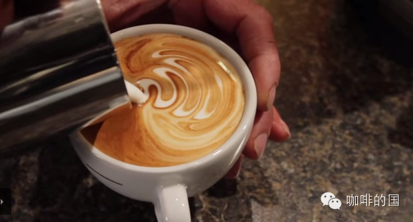 以上步骤对于我们拉花初学者来说,太官方,所以我用我自己的方式给大家说说我心得中的核心内容。 1、奶泡一定要细腻而绵密,同时一定要将奶泡和牛奶充分混合,不能让它们分层,否则奶泡和牛奶倒入咖啡杯中的时候会出现牛奶和咖啡混合,而上面是一堆奶泡的情况。 2、开始倒入牛奶时,我们应该将拉花缸提高,让牛奶的流速呈细长而缓慢的方式注入,这样做的目的是为了压住白色泡沫,不让其上翻,才能使牛奶和咖啡充分融合。 3、当我们注入牛奶到达咖啡杯一半的高度时,应将拉花缸的高度降下,同时注入牛奶的方式发生改变,这时的牛奶流速是快而粗的,这样的目的是为了是白色奶泡上翻,方便我们拉花。 4、当看到白色奶泡浮出时,左右摇晃,杯子中会开始呈现出白色的“之”字型奶泡痕迹。 5、逐渐往后移动拉花杯,并且缩小晃动的幅度,最后收杯时往前一带顺势拉出一道细直线,画出杯中叶子的梗作为结束。 这个就是我这个初学拉花者的心得,不知道对与大家有没有用。 Step 1:准备好espresso和奶泡,直接把奶泡往里倒(用专业咖啡机打出来的奶泡成功率比较高) 当你往下倒奶泡的时候应该先快后慢,速度快的时候奶泡因为冲量大,沉下去,然后又因为液体的作用力浮上去,等到你看见下图右半边液体的颜色已经变白许多的时候就可以开始“拉”了,把奶泡杯拉远一点观察一下液体状态,再拉近继续倒,晃晃杯子变均匀点。 这里是第一次重要的拉!这时候整个咖啡的颜色都变浅了。