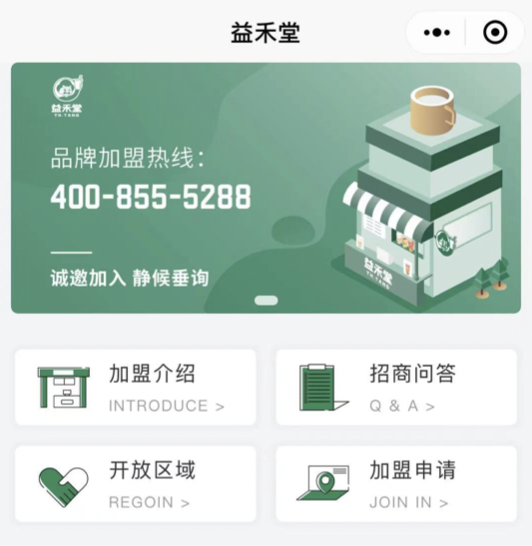 而如今,每个茶饮品牌的官方公众号都有加盟入口,甚至很多品牌都直接嵌入小程序,点击加盟申请都会自动跳转到小程序。