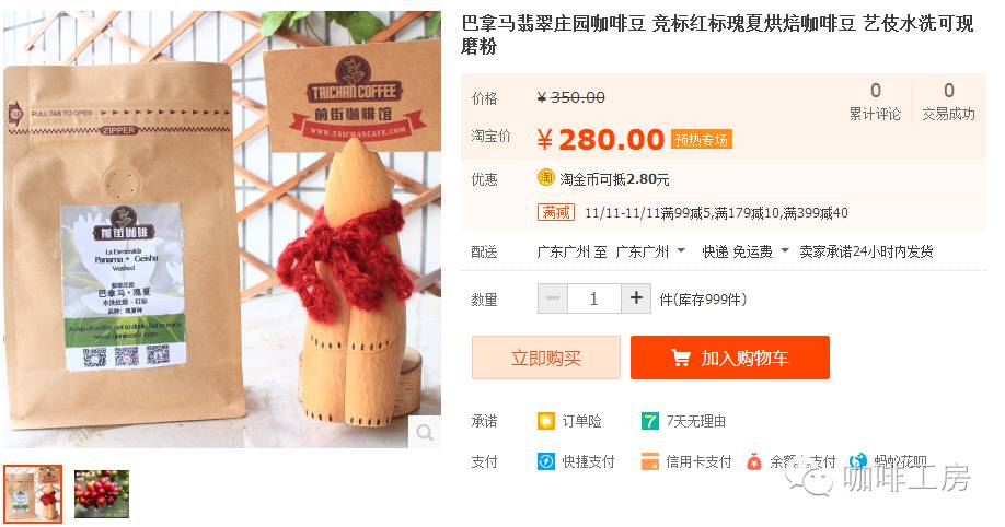 巴拿马翡翠庄园 蓝标瑰夏 100克装推荐理由:8折后是96元,性价比超高!!淘宝连接:https://item.taobao.com/item.htm?spm=a1z10.1-c.w4004-3627045911.15.Xr8FsY&id=539601021706