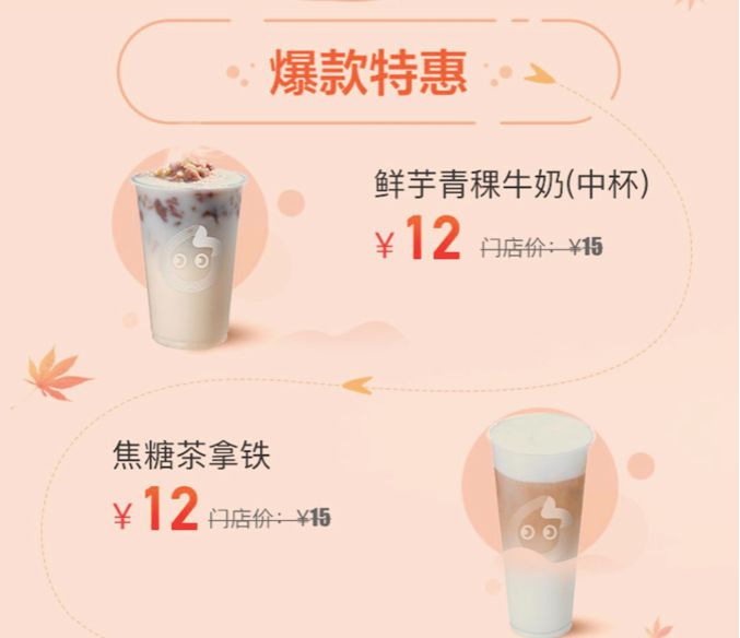 图片来自CoCo都可微信公众号- 爆款/单品特惠一款或几款产品有不等金额减免的优惠。